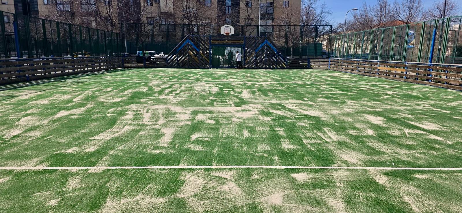 Concluidas estas intervenciones, se ha vuelto a plantar el césped artificial nuevo, provisto de arena para evitar resbalones y caídas, cumpliéndose así con una demanda de los vecinos y usuarios de estas pistas. Los trabajos han durado más de lo previsto, debido a las intensas lluvias de las últimas semanas que han retrasado la instalación del nuevo césped.