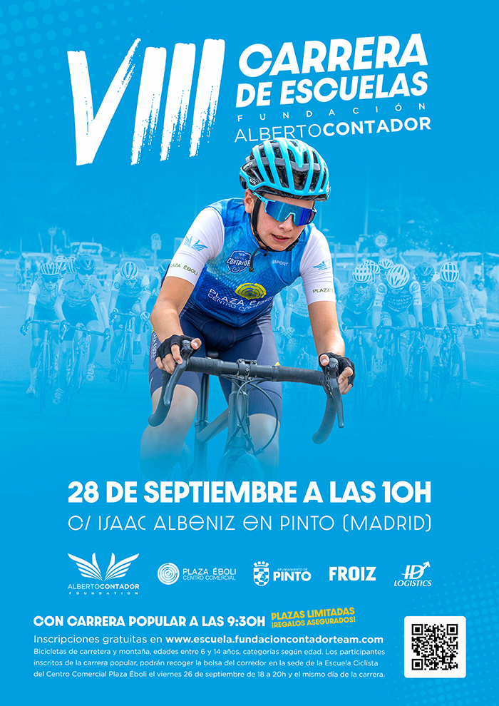 El Ayuntamiento de Pinto y la Fundación Alberto Contador presentan la octava edición de la Carrera de Escuelas impulsada por la fundación que lleva el nombre del campeón ciclista pinteño. La cita tendrá lugar el domingo 28 de septiembre a las 10:00 h.