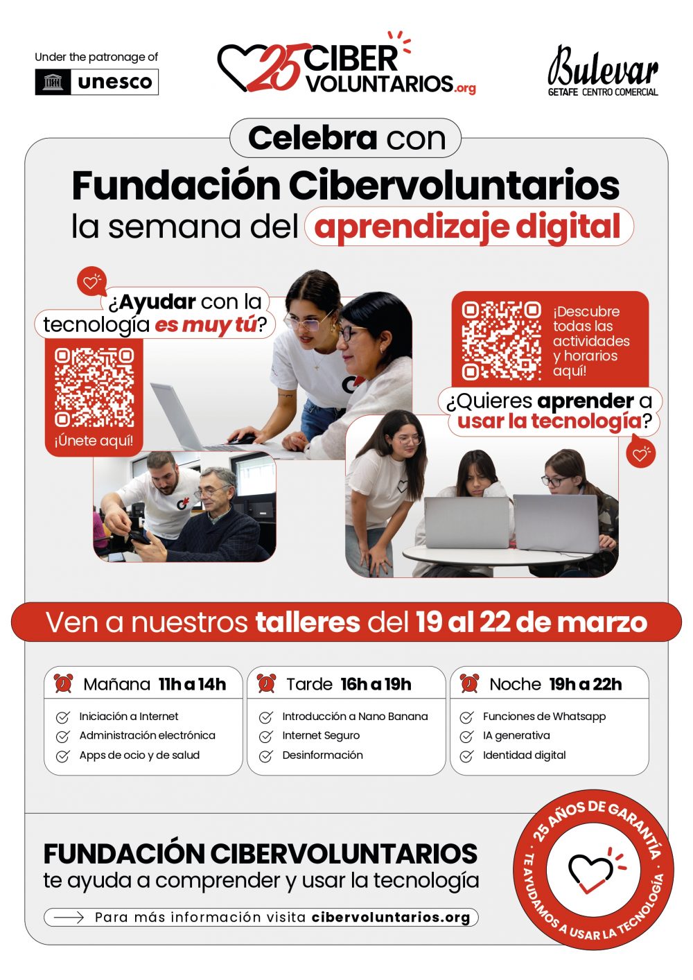 Centro comercial Bulevar de Getafe (Madrid) y Fundación Cibervoluntarios celebran, con motivo del Día Internacional del Aprendizaje Digital declarado por la UNESCO, jornadas de actividades centradas en la digitalización entre el jueves y el sábado, 21 de marzo.