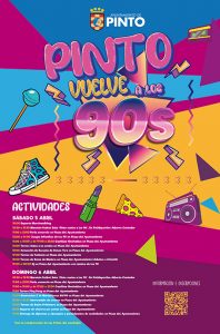 ‘Pinto vuelve a los 90’ los días 5 y 6 de abril. El Ayuntamiento de Pinto, a través de la Concejalía de Emprendimiento y Turismo que